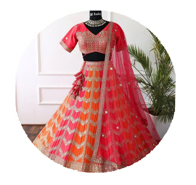 Pink Orange color Sequence Embroidery work Designer Lehenga choli