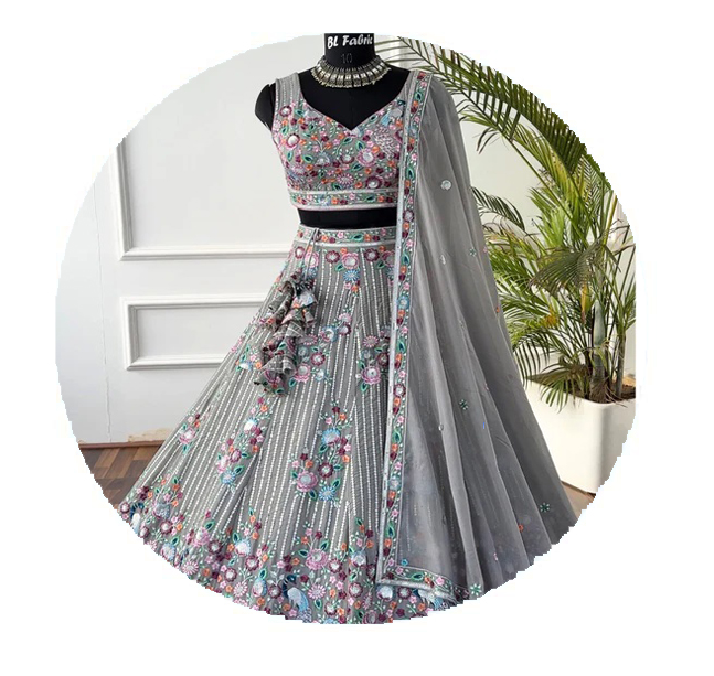 Heavy Blue color Sequence Thread Embroidery work Designer Lehenga choli