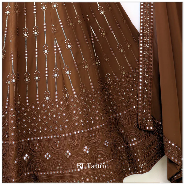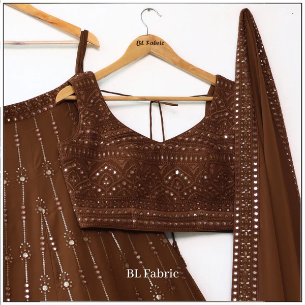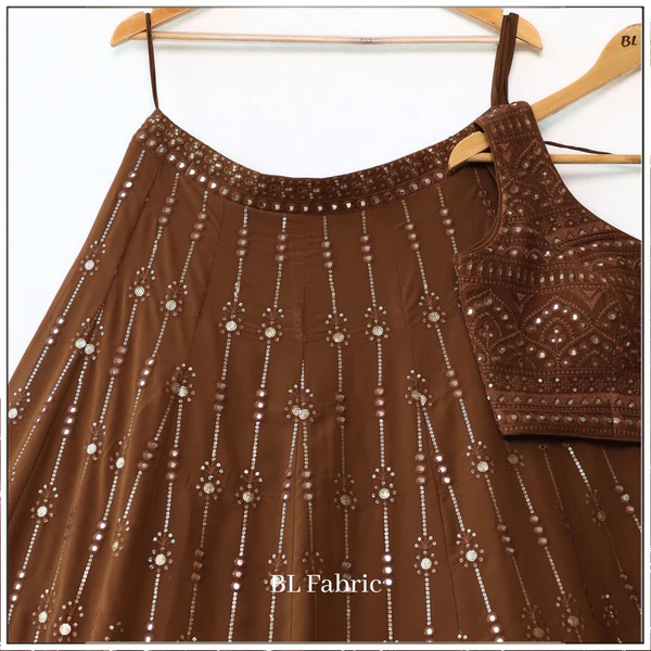 Brown color Mirror & Sequence Embroidery work Designer Wedding Lehenga Choli