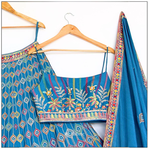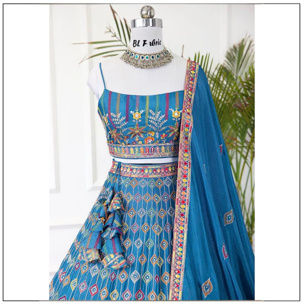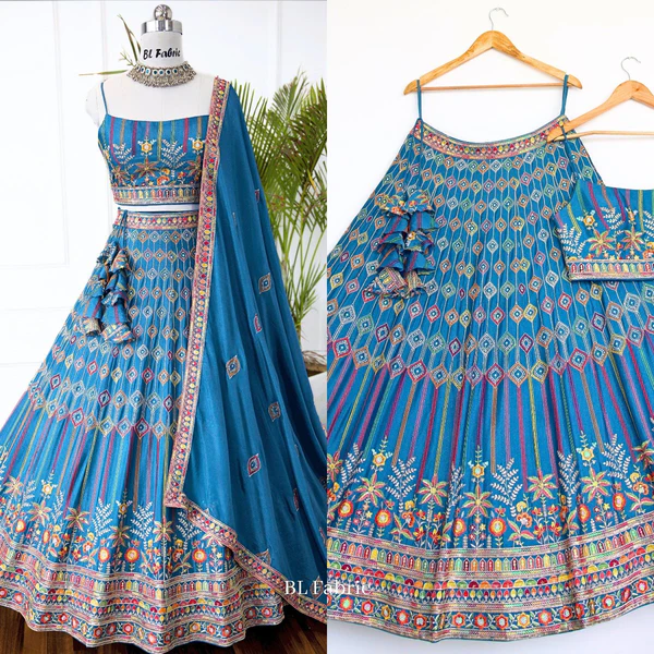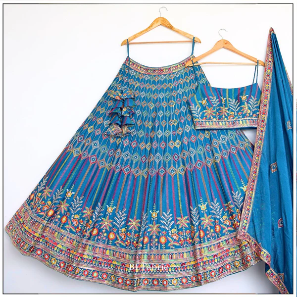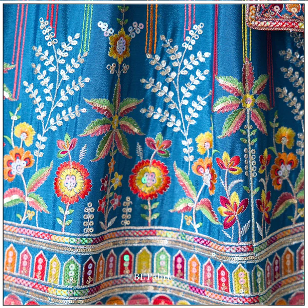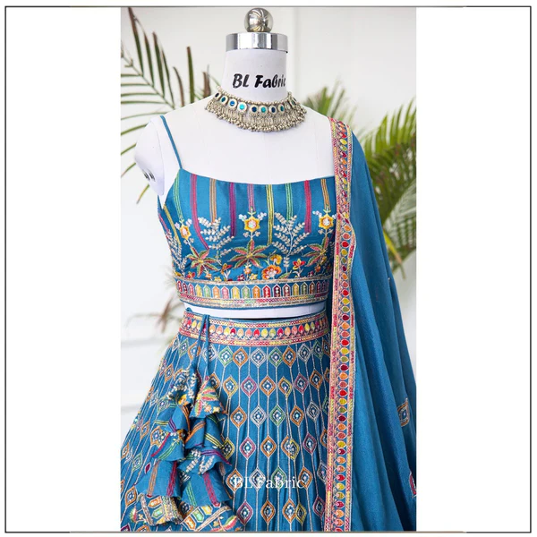 FIrozi color Designer Sequence Embroidery work Lehenga choli