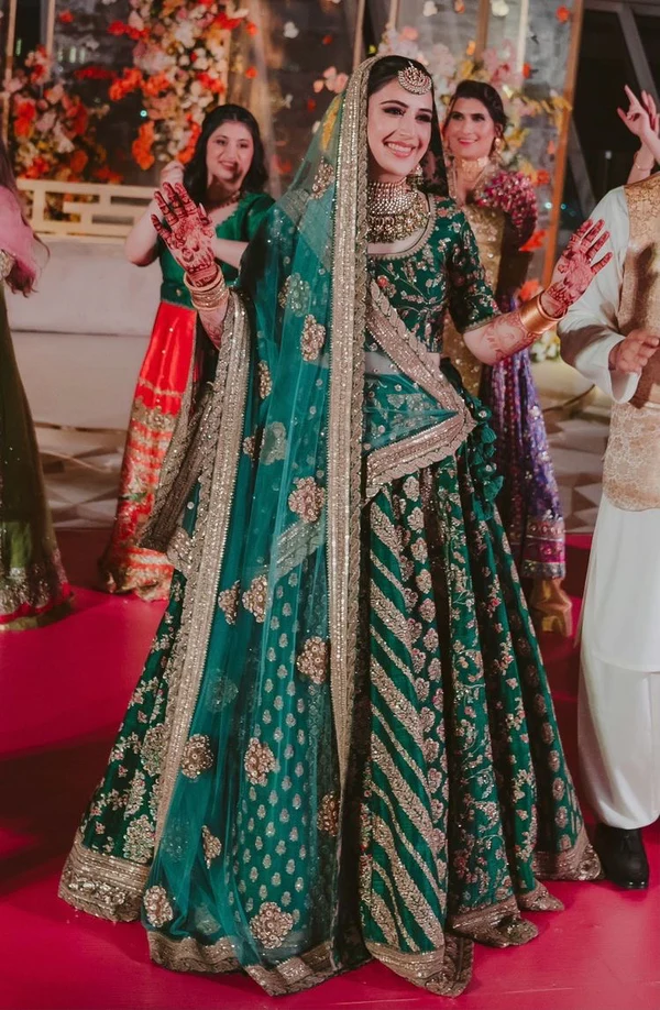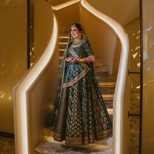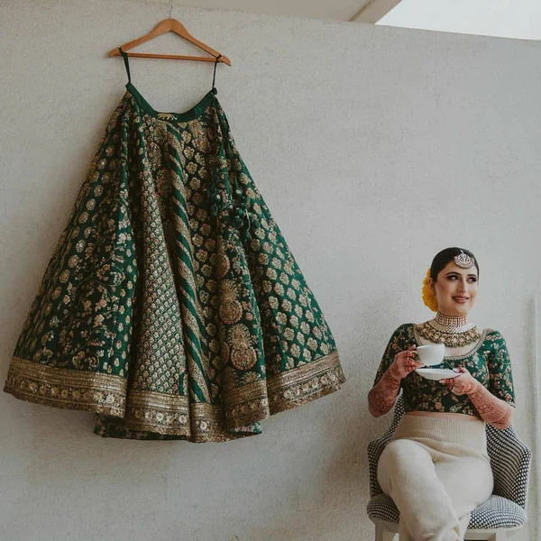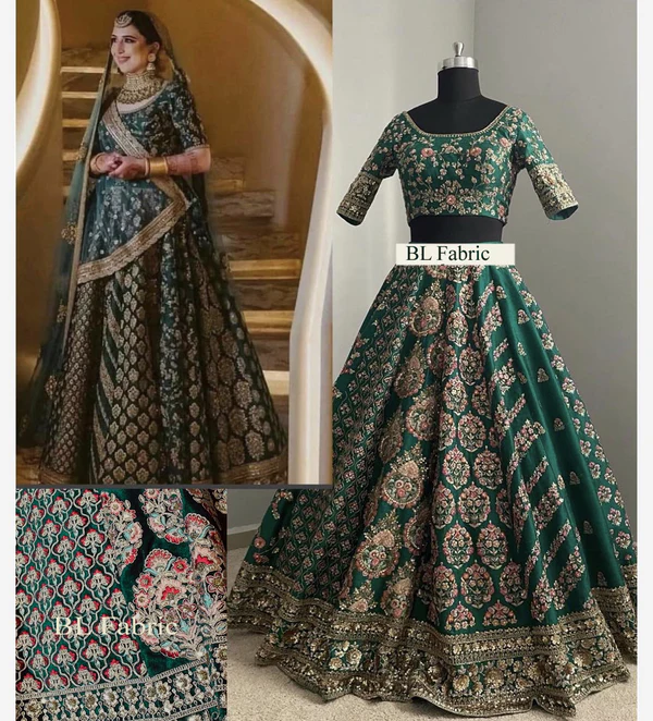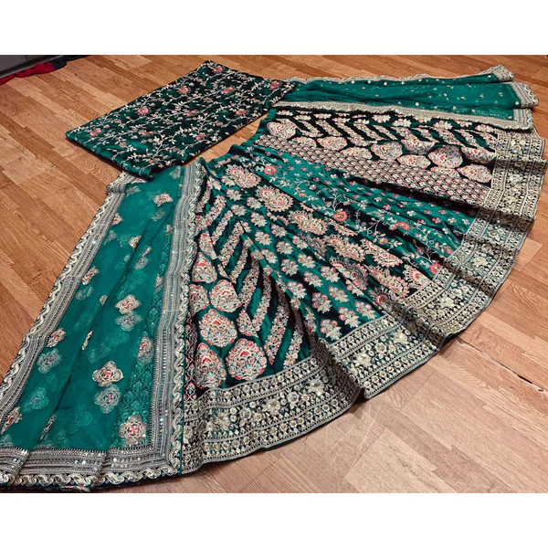 Mid Green color Heavy Bridal Multi Design Lehenga Choli