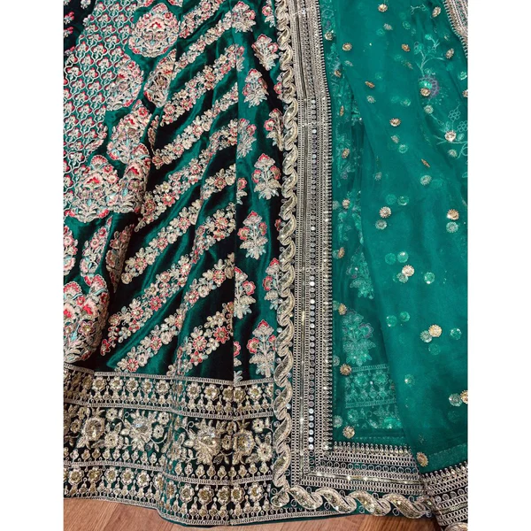 Lehenga : Velvet Fabric With Embroidery & Sequence Work