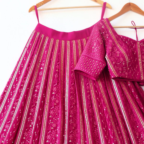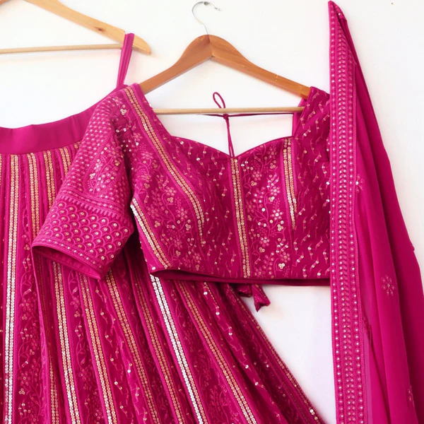 Lehenga : Faux Georgette With Sequence Embroidery Zari Work