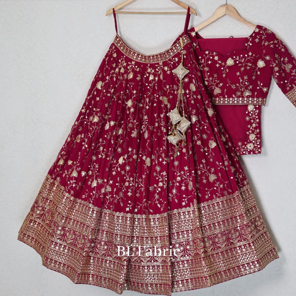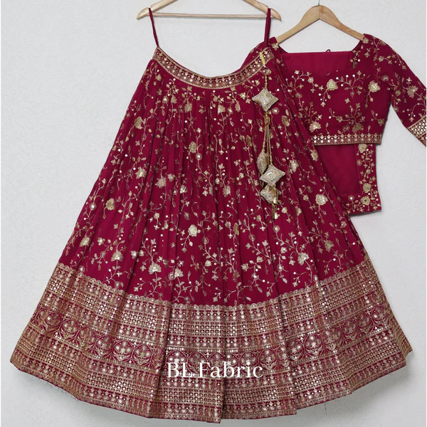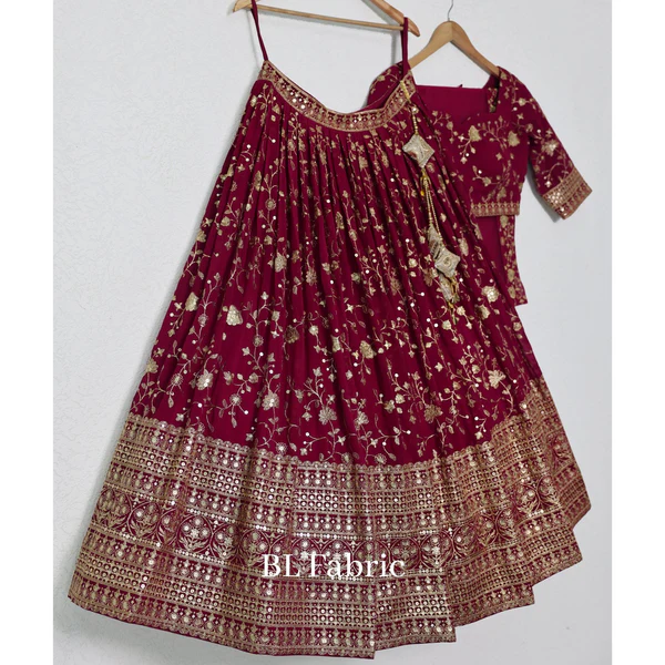 Lehenga : Faux Georgette With Sequence Embroidery Zari Work