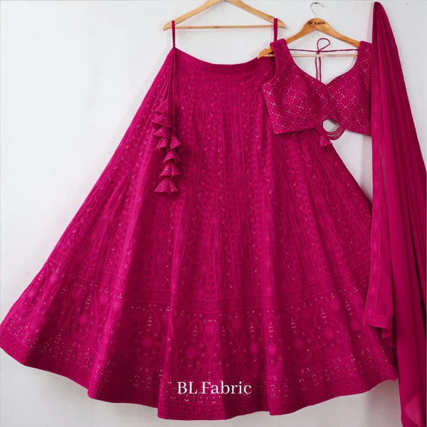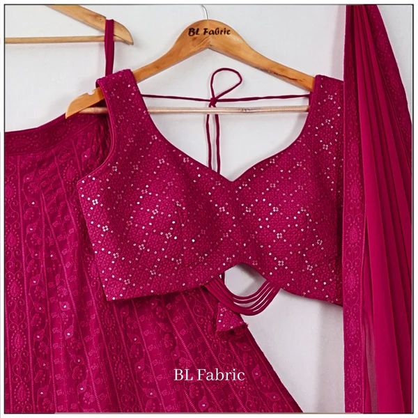 Lehenga : Faux Georgette With Sequence Embroidery Thread Work