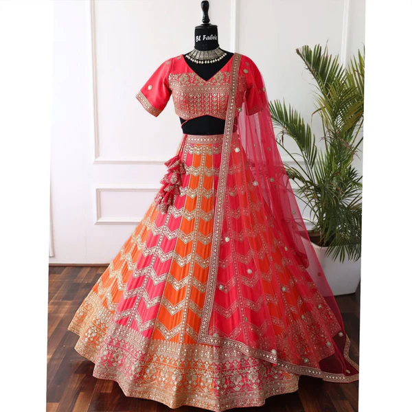 Pink Orange color Sequence Embroidery work Designer Lehenga choli