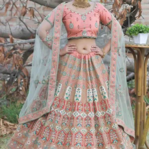 Peach color Mirror & Sequence Embroidery work Designer Wedding Lehenga Choli