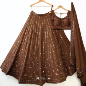 Brown color Mirror & Sequence Embroidery work Designer Wedding Lehenga Choli