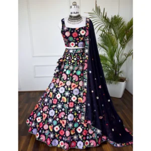 Heavy Blue color Sequence Thread Embroidery work Designer Lehenga choli