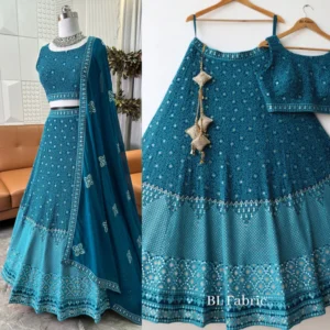 FIrozi color Designer Sequence Embroidery work Lehenga choli